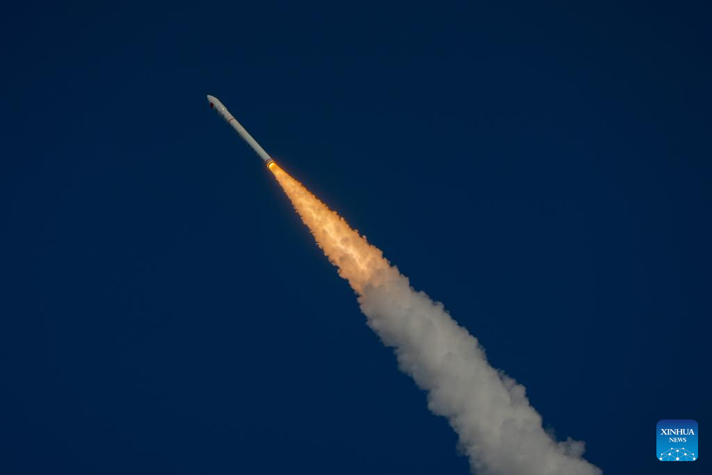 The CERES-1 commercial carrier rocket carrying a group of five satellites blasts off from the Jiuquan Satellite Launch Center in northwest China, May 31, 2024. (Photo by Yang Xiaobo/Xinhua)