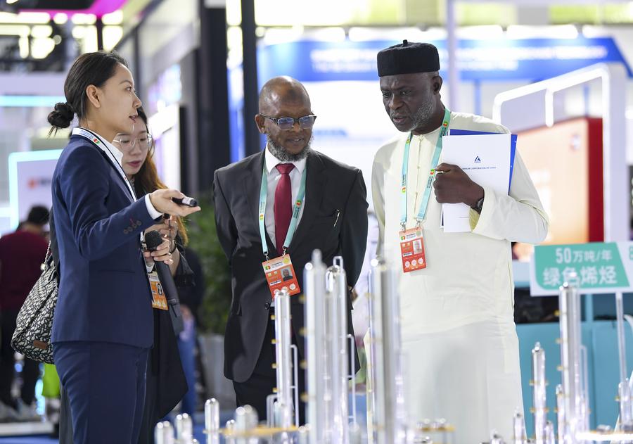 Guests learn about a clean energy project at the sixth China-Arab States Expo in Yinchuan, northwest China's Ningxia Hui Autonomous Region, Sept. 22, 2023. (Xinhua/Wang Haizhou)