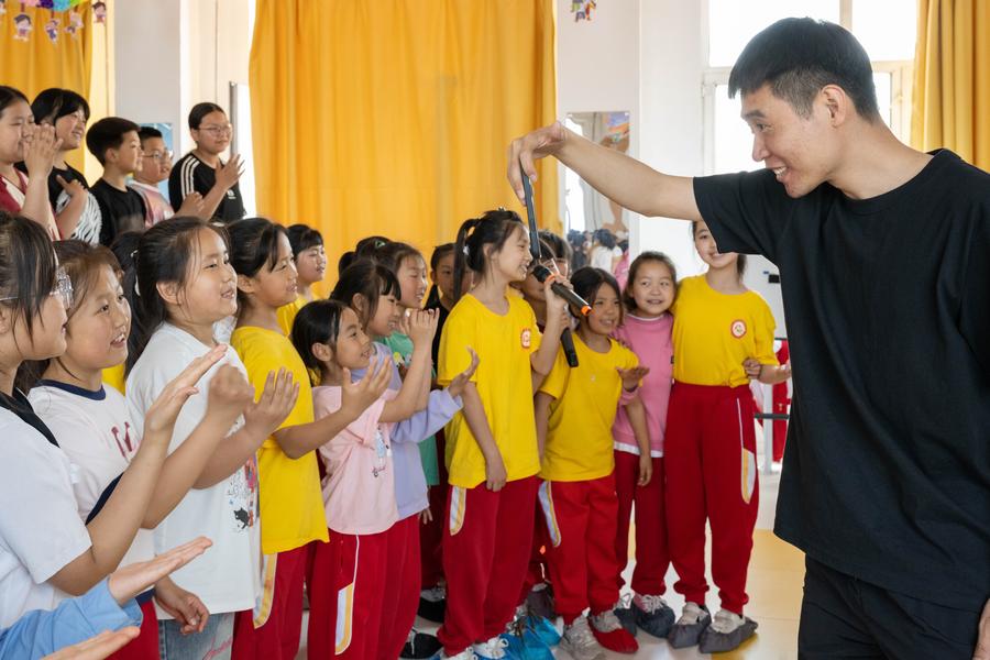 Children practice chorus at the Renmin Town Central Primary School in Anda City, northeast China's Heilongjiang Province, May 29, 2024. (Xinhua/Ding He)