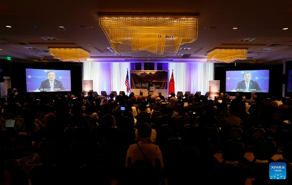 This photo taken on May 29, 2024 shows a scene of the U.S.-China High-Level Event on Subnational Climate Action in Berkeley, California, the United States. Climate leaders from the United States and China got together on Wednesday in Berkeley, the U.S. state of California, to discuss climate action and progress at the sub-national level. (Photo by Li Jianguo/Xinhua)
