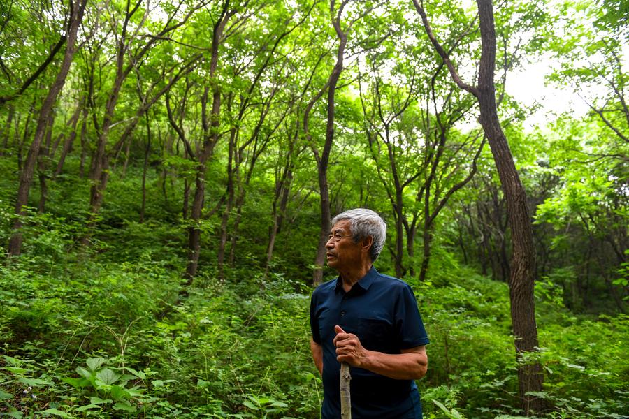 Mei Jingtian is on his way to patrol the Great Wall in Shixia Village in Yanqing District of Beijing, capital of China, May 23, 2024. Mei started protecting the Great Wall spontaneously since early 1980s and has raised the awareness of the Great Wall protection among many villagers. (Xinhua/Liu Jinhai)