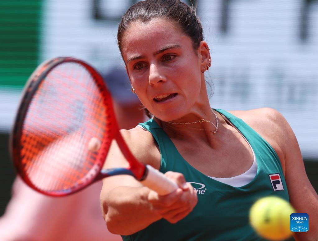 PARIS, June 3 (Xinhua) -- Aryna Sabalenka continued her bid for back-to-back majors as the world No. 2 stormed into the last eight after a straight-set victory over American fourth-round debutant Emma Navarro in Paris on Monday.