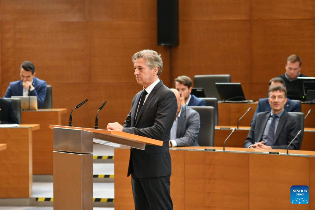 Slovenian Prime Minister Robert Golob (Front) attends the parliamentary session dedicated to the recognition of Palestine in Ljubljana, Slovenia, on June 4, 2024. The Slovenian Parliament on Tuesday voted to approve the proposal of recognizing the statehood of Palestine, a move the legislator body said would hopefully help stop the violence in Gaza. (Bozidar Kolar/STA/Handout via Xinhua)