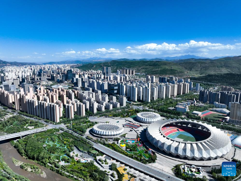 An aerial drone photo taken on June 4, 2024 shows a view of Xining, capital of northwest China's Qinghai Province. Urban ecosystem in Xining has greatly improved thanks to landscaping efforts in recent years, and the city is also more and more habitable. (Xinhua/Zhang Long)