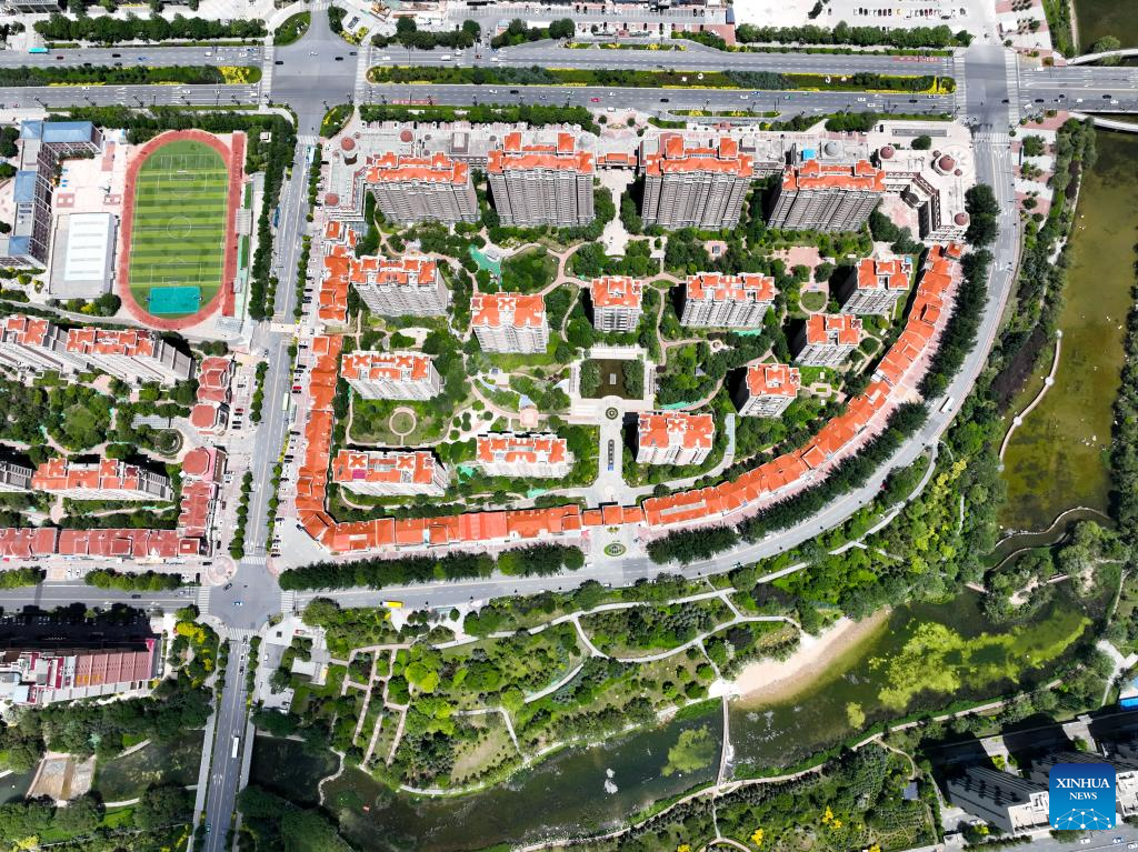 An aerial drone photo taken on June 4, 2024 shows a view of Xining, capital of northwest China's Qinghai Province. Urban ecosystem in Xining has greatly improved thanks to landscaping efforts in recent years, and the city is also more and more habitable. (Xinhua/Li Zhanyi)
