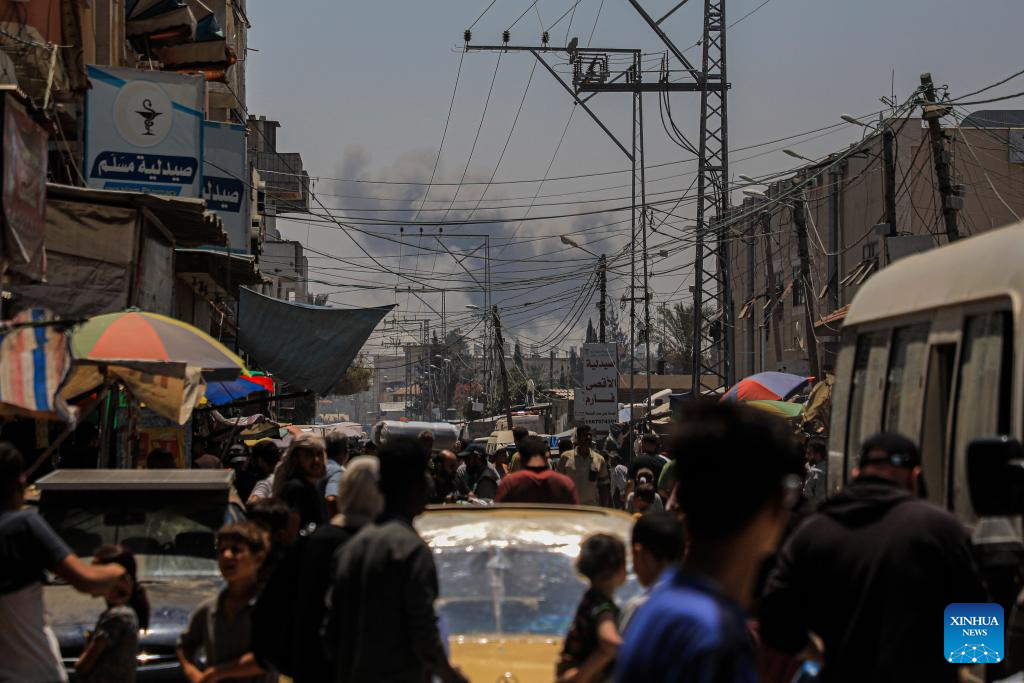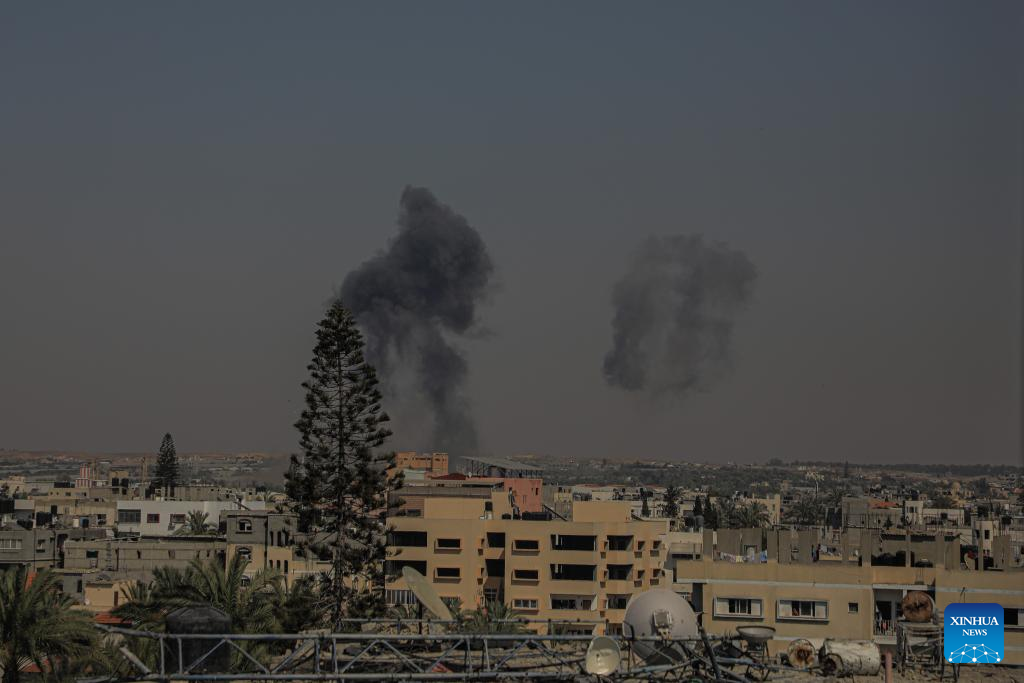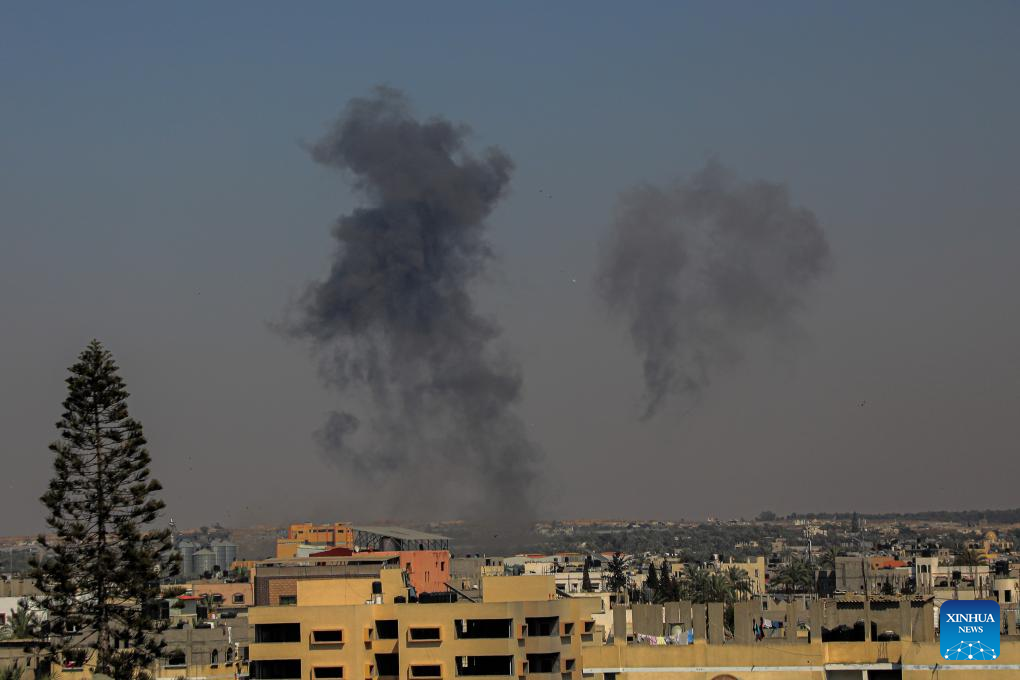 Smoke rises following Israeli airstrikes in the Al-Bureij and Al-Maghazi refugee camps in central Gaza Strip, on June 5, 2024. At least 75 Palestinians were killed in Israeli overnight attacks on several areas in the central Gaza Strip, Palestinian sources said on Wednesday. (Photo by Rizek Abdeljawad/Xinhua)