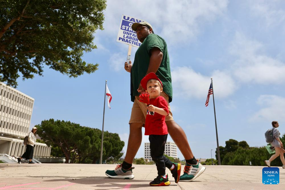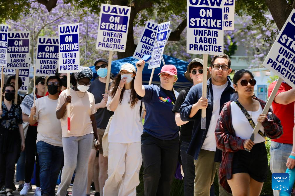 LOS ANGELES, June 5 (Xinhua) -- Academic workers at the University of California (UC), Irvine in the western U.S. state of California walked off the job on Wednesday, joining their counterparts at other campuses in the UC system on strike in response to the university's handling of pro-Palestinian protests.