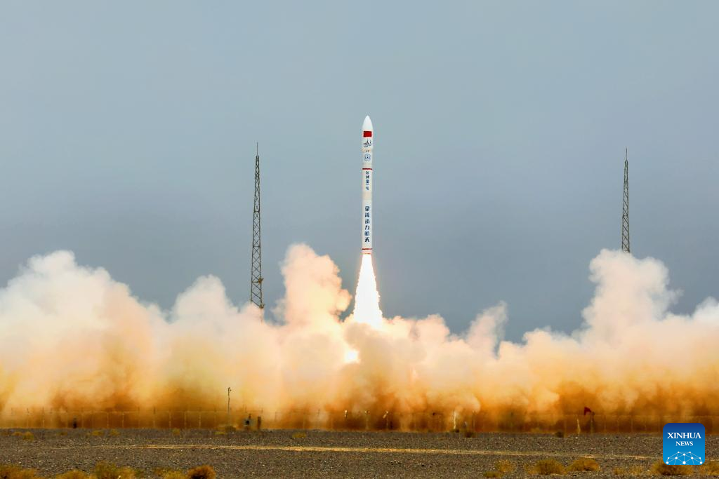 The CERES-1 carrier rocket carrying three satellites blasts off from the Jiuquan Satellite Launch Center in northwest China, June 6, 2024. (Photo by Wang Haixia/Xinhua)