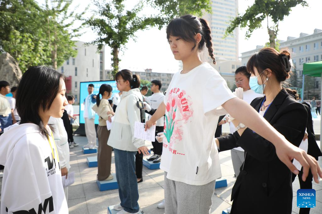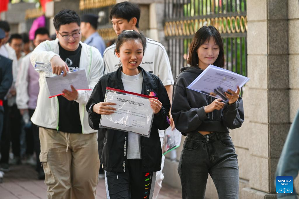 Examinees enter a national college entrance examination site in Harbin, northeast China's Heilongjiang Province, June 7, 2024. China's national college entrance examination, known as the Gaokao, started on Friday. (Xinhua/Wang Song)