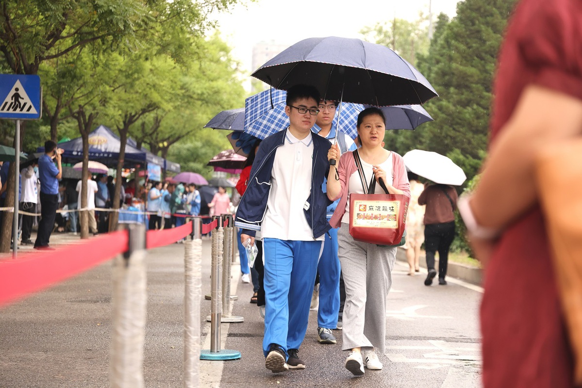 A student walks together with his mother to the exam venue at the Chaoyang Campus of High School Affiliated to Renmin University on June 7, 2024. [Photo by Wang Jing/chinadaily.com.cn]