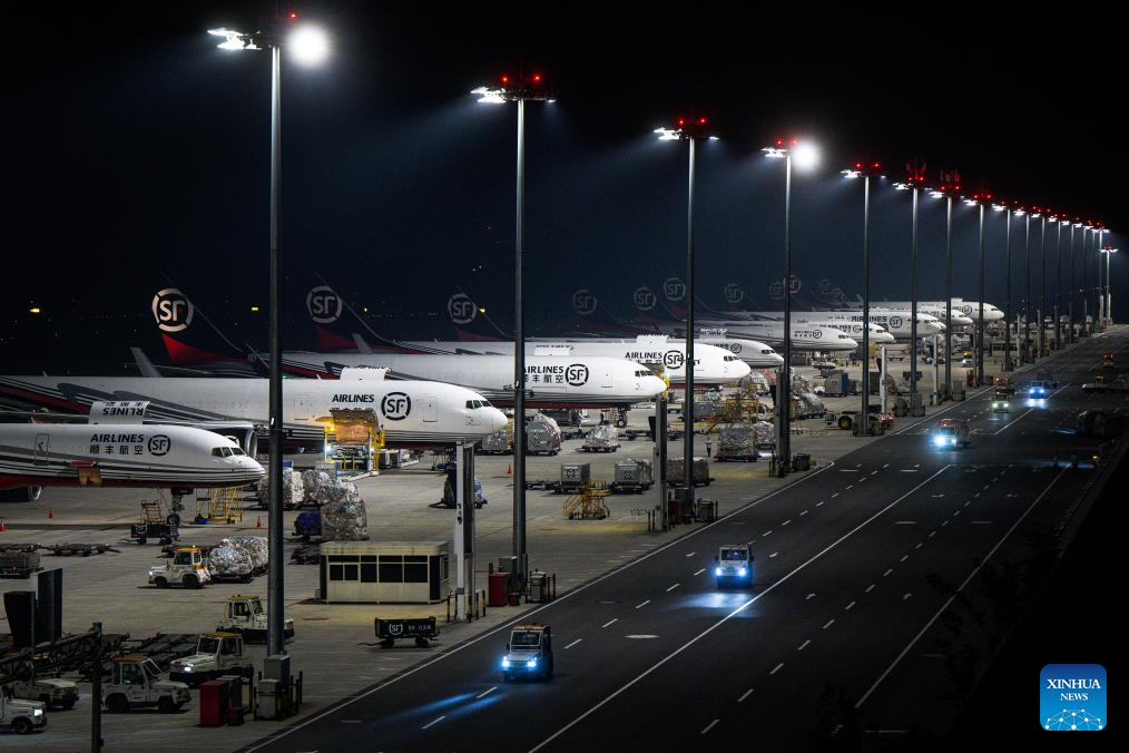 The Ezhou Huahu Airport, an all-cargo hub airport, saw its accumulated international throughput exceeding 100,000 tonnes on Saturday. Starting international operation in April 2023, the airport is now running 18 international routes in addition to 50 domestic routes. It owns a 750,000-square meter cargo transfer center with parcel sorting lines adding up to 52 kilometers.