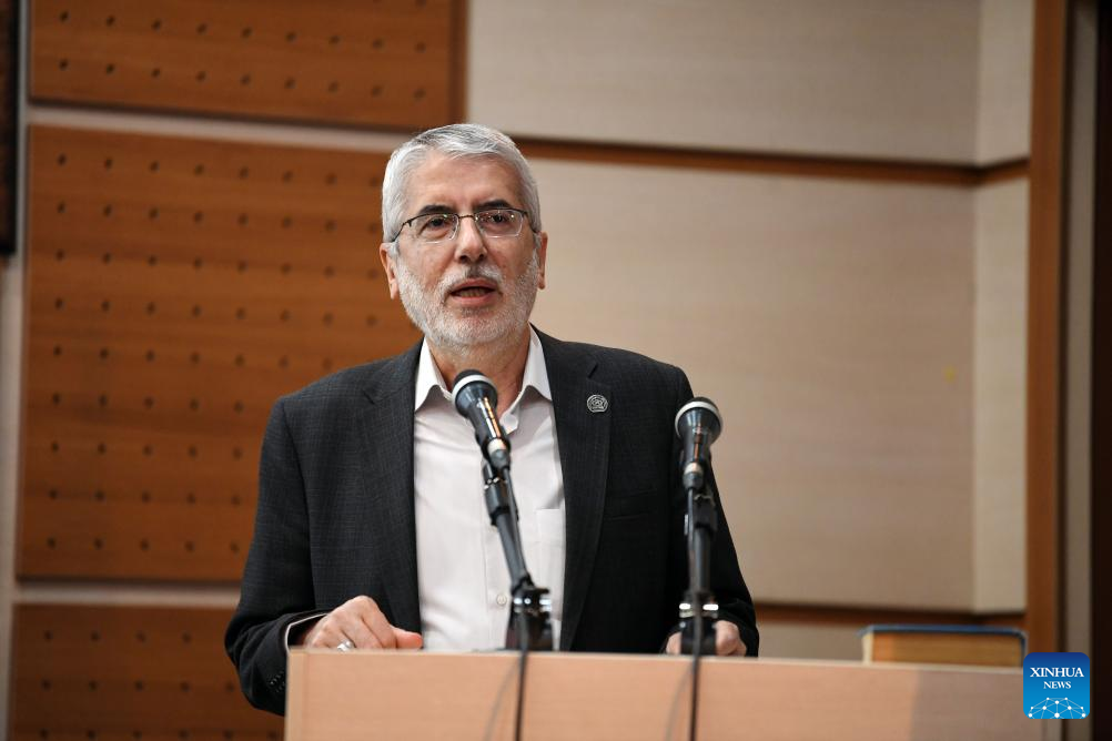 President of Allameh Tabataba'i University Abdollah Motamedi speaks at the final round of the "Chinese Bridge" language proficiency competition for Iranian college students held at Allameh Tabataba'i University in Tehran, Iran, June 10, 2024.?(Xinhua/Shadati)