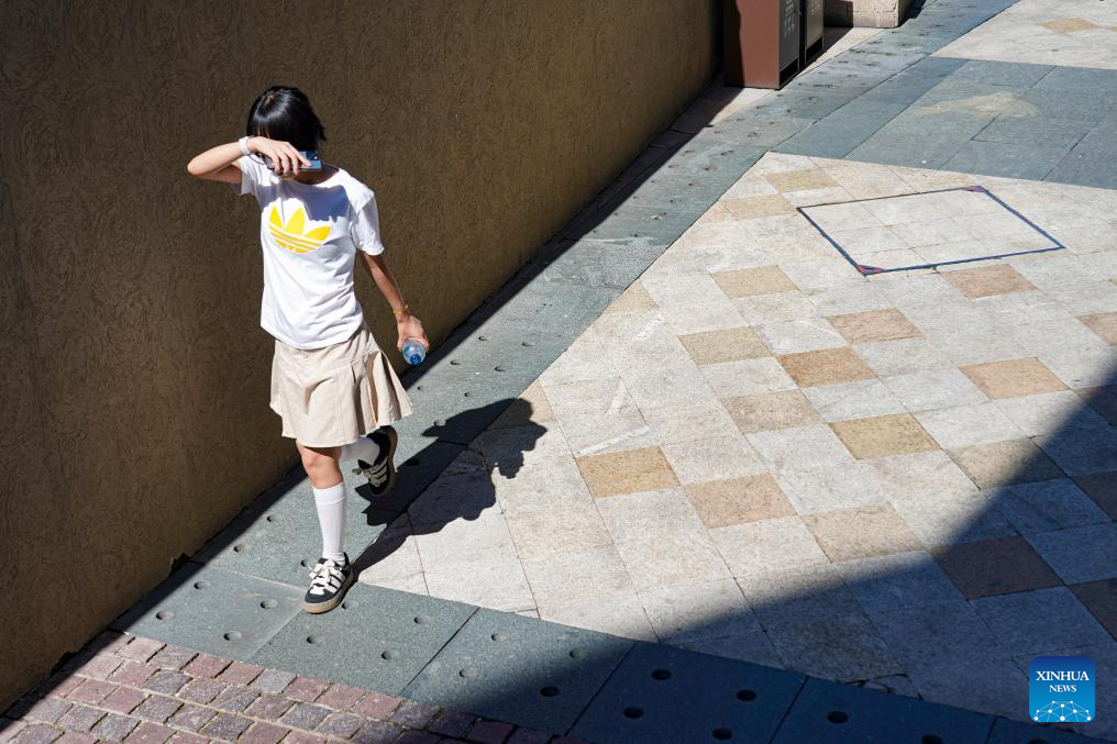 A person walks under the sun in Beijing, capital of China, June 9, 2024. (Xinhua/Chen Zhonghao)