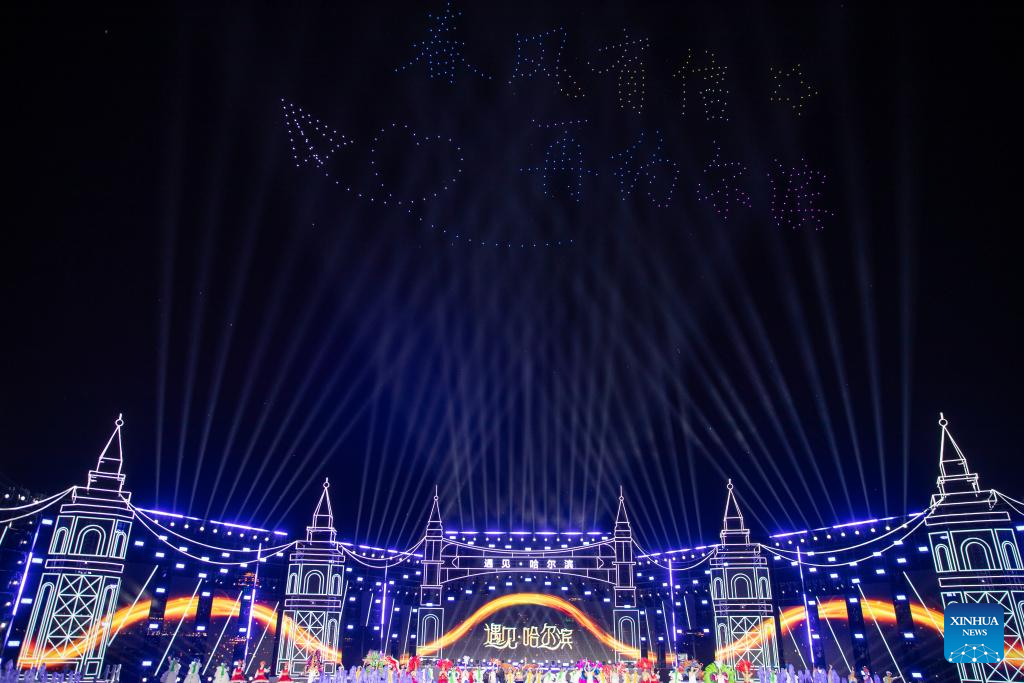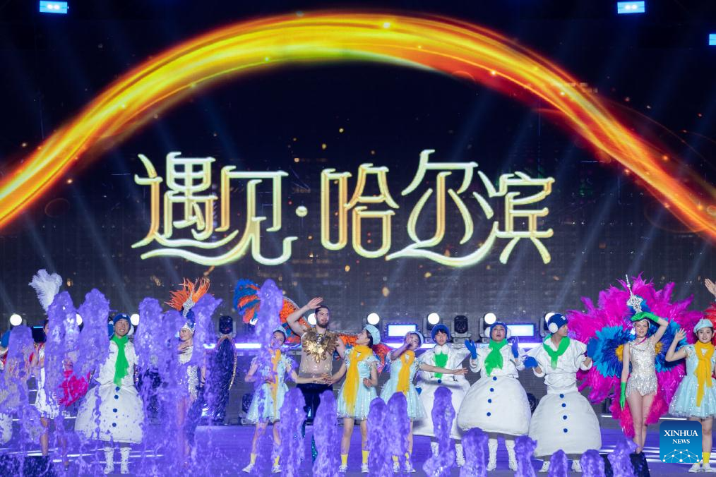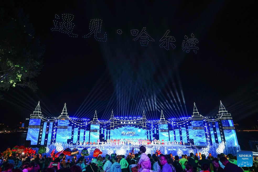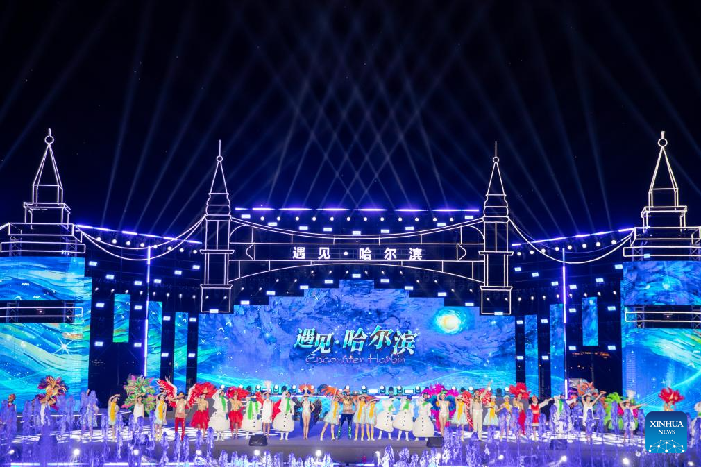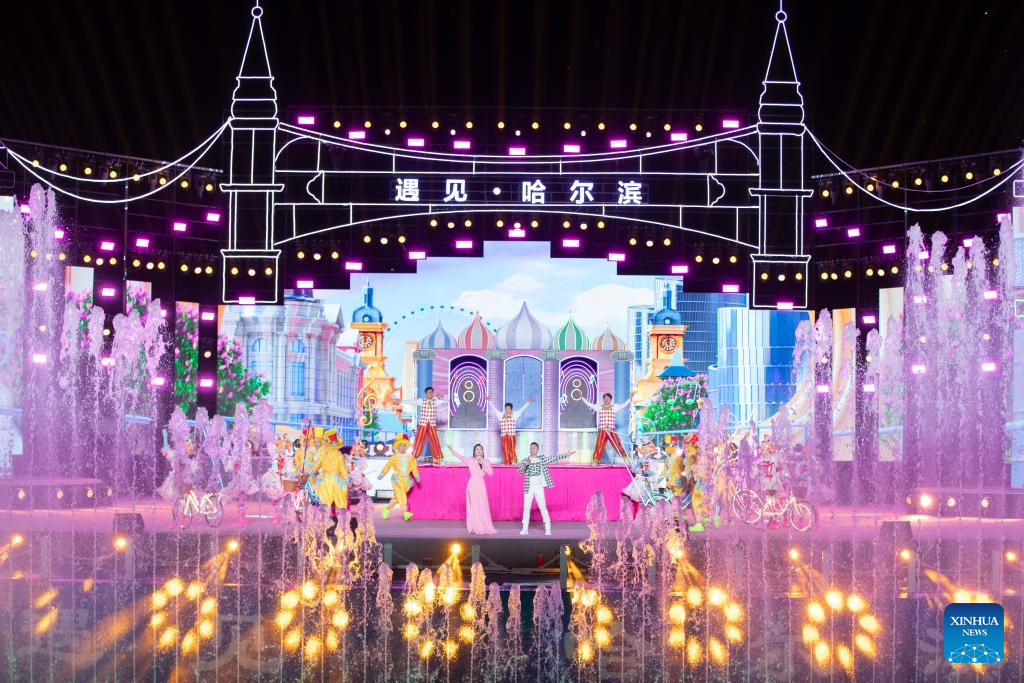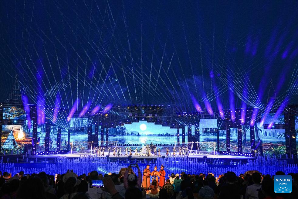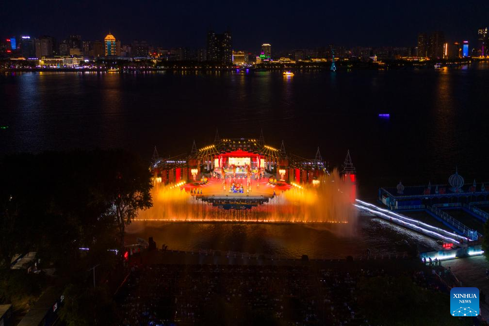 The live-action performance "Encounter Harbin" is staged at Sun Island scenic spot in Harbin, northeast China's Heilongjiang Province, June 10, 2024. (Xinhua/Wang Jianwei)