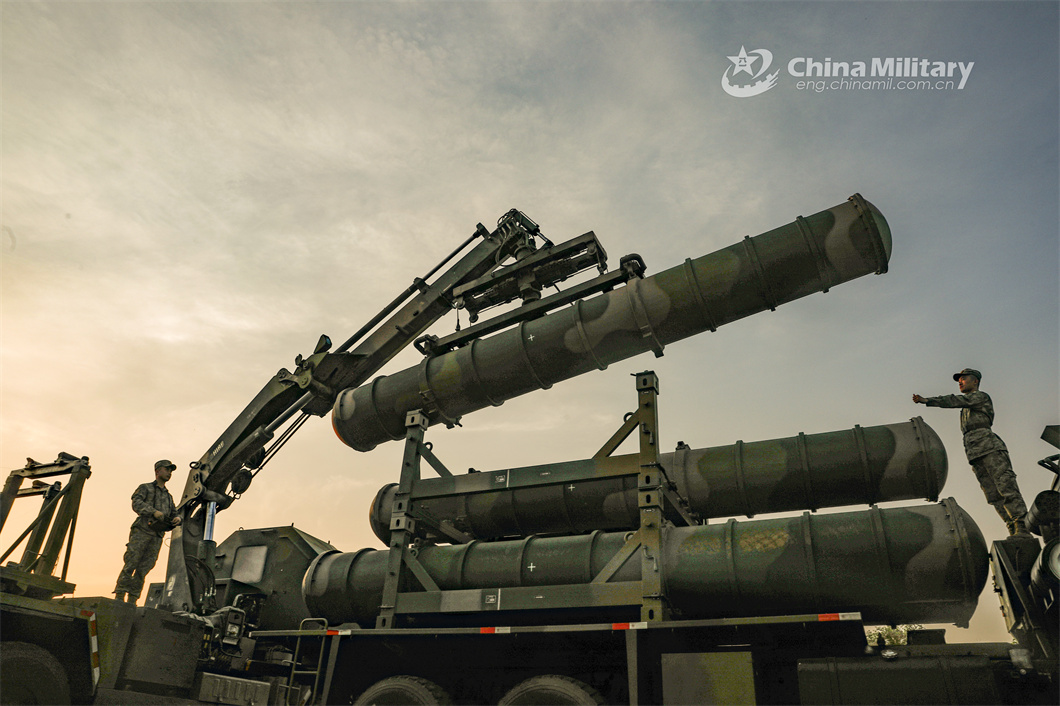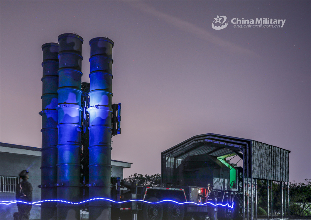 Airmen assigned to a model ground-to-air missile battalion of the PLA Air Force operate a ground-to-air missile system during a nighttime training exercise on May 22, 2024. (eng.chinamil.com.cn/Photo by Wang Yizhe)