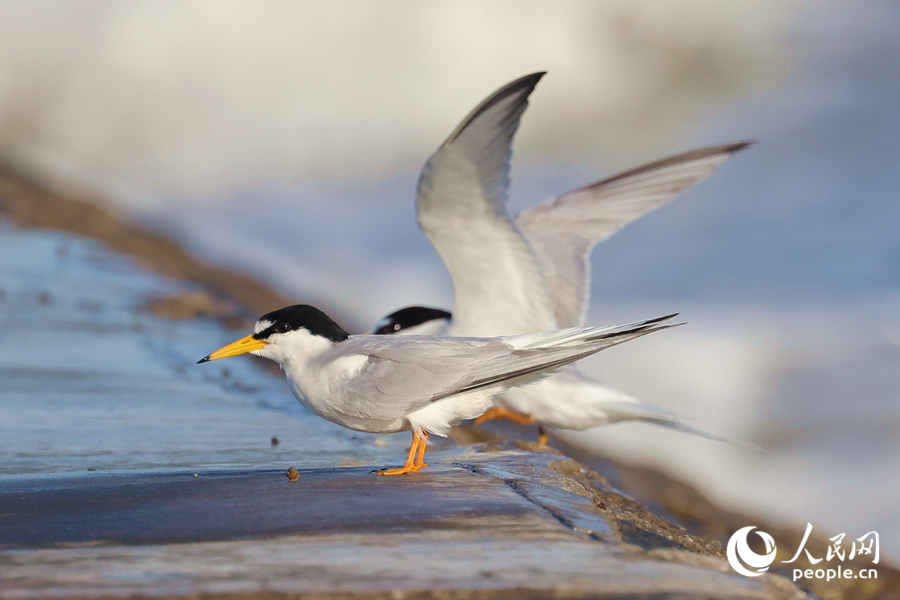 A tern takes a rest on an embankment. (People’s Daily Online/Chen Bo)