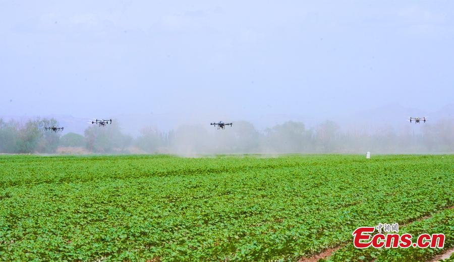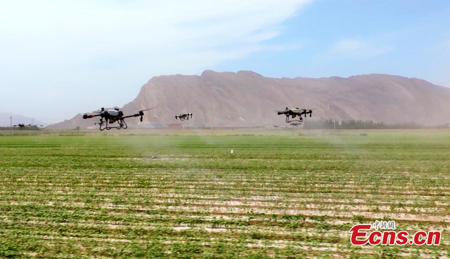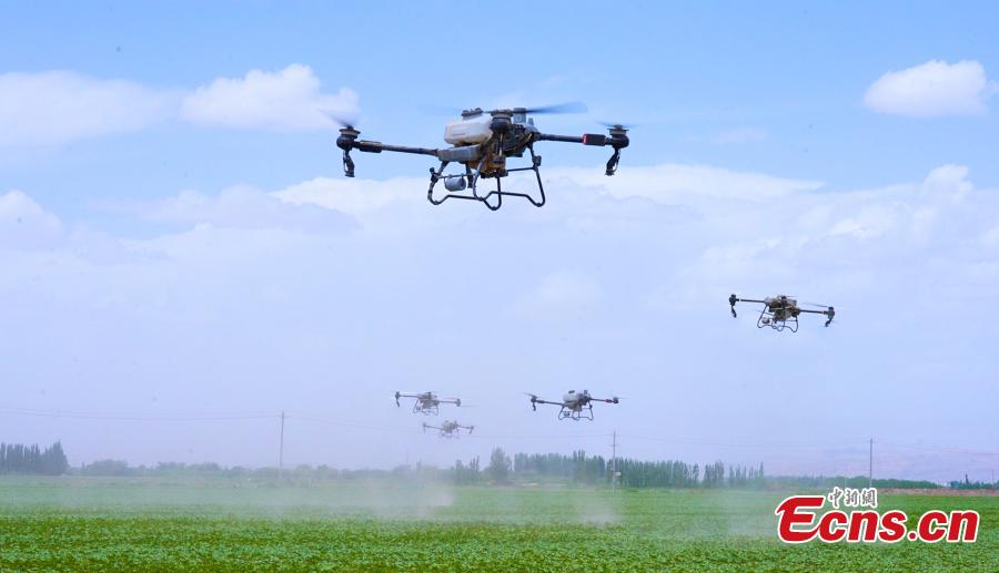 Farmers in Xinjiang have been using drones for plant protection for their advantages of accuracy, efficiency and safety.
