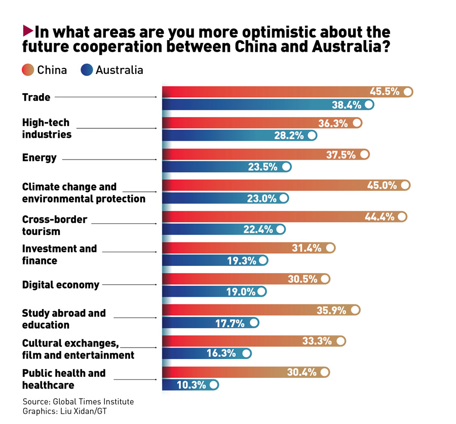 In what areas are you more optimistic about the future cooperation between China and Australia? Graphics: Liu Xidan/GT