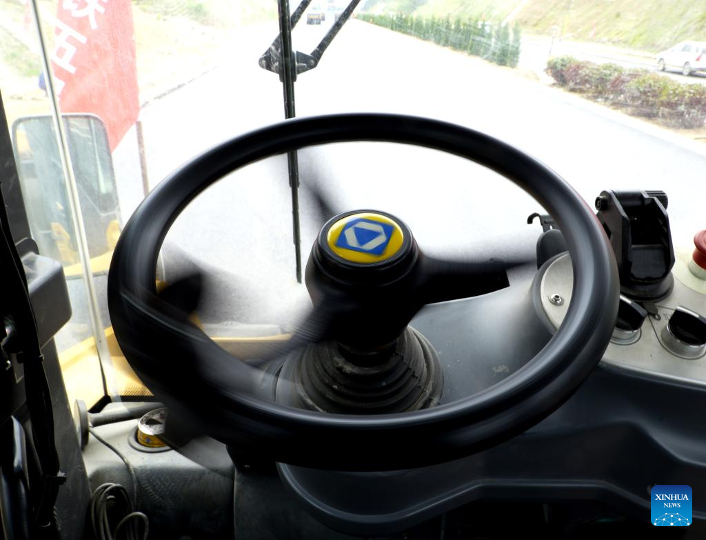 An automated road roller operates at the construction site of an expressway in Xinxian County, central China's Henan Province, April 11, 2024. With the application of technologies such as 5G and BeiDou Navigation Satellite System, the intelligent level of traditional industries in China's central region has been upgraded in recent years. (Xinhua/Li Jianan)