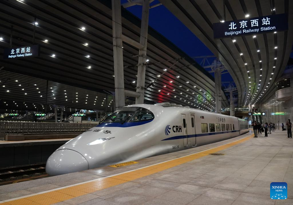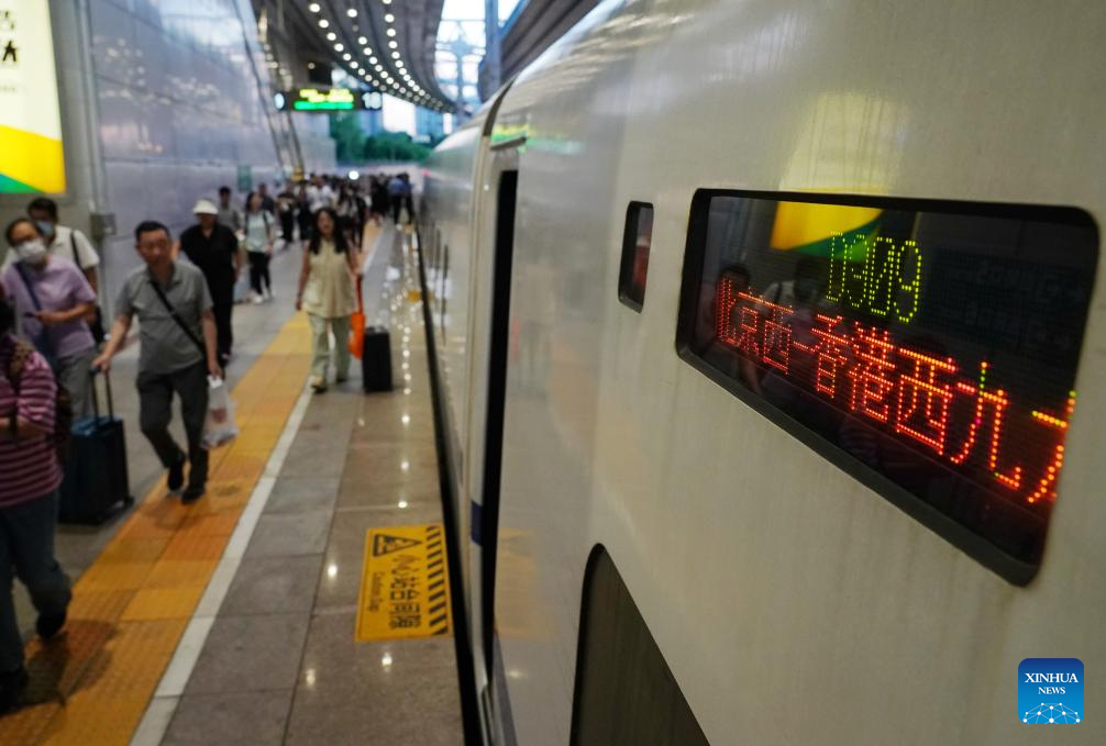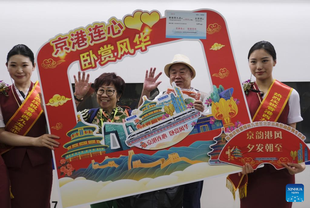 The high-speed sleeper train D909 bound for Hong Kong's West Kowloon Station departs from Beijing West Railway Station in Beijing, capital of China, June 15, 2024. High-speed sleeper trains linking Beijing and Shanghai with Hong Kong commenced operations on Saturday.