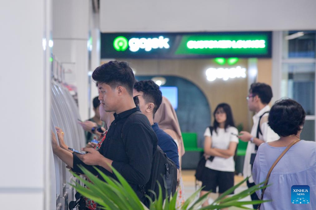 Passengers claim tickets on self-service devices at Halim Station in Jakarta, Indonesia, June 17, 2024.
