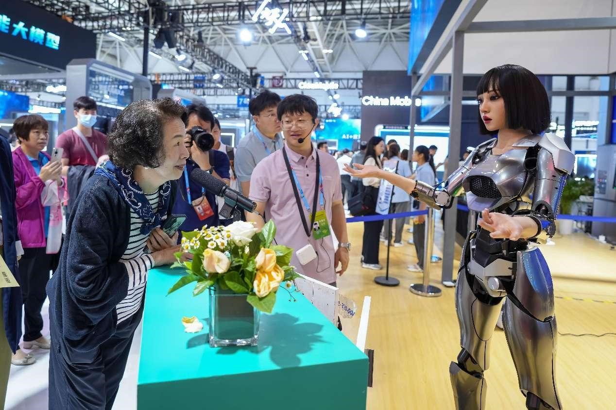 Visitors experience a large model developed by Chinese telecommunication company China Telecom at the 2024 China Brand Day events in Shanghai, May 12. (Photo by Wang Chu/People's Daily Online)