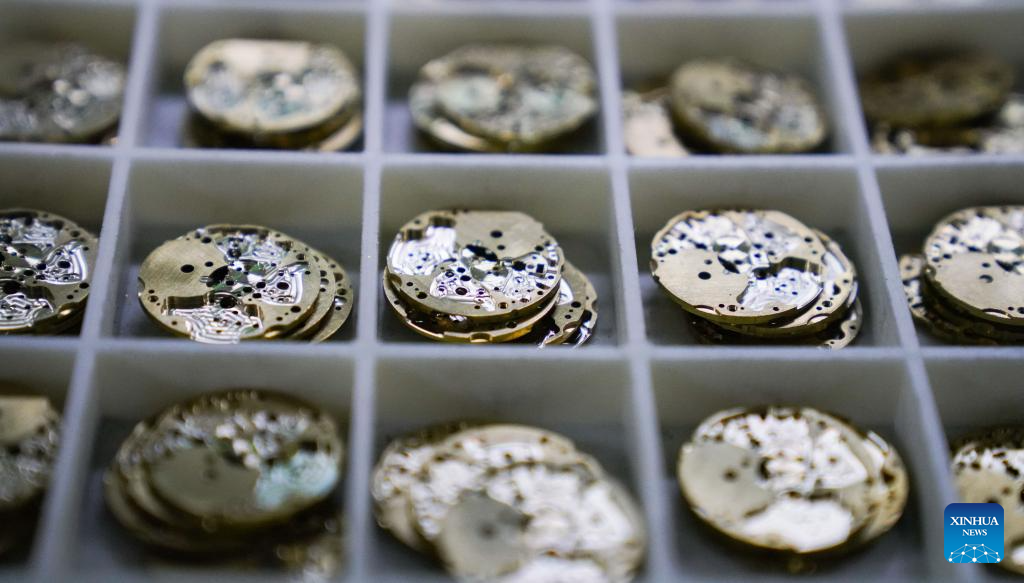 This photo taken on June 18, 2024 shows watch components at Liaoning Peacock Watch Co., Ltd. in Dandong City, northeast China's Liaoning Province. The watch industry is one of the traditional industries in Dandong City. In recent years, Dandong has vigorously promoted technological innovation and cultivated innovative enterprises, so as to upgrade traditional industries and develop high-tech manufacturing. (Xinhua/Fan Yuqing)