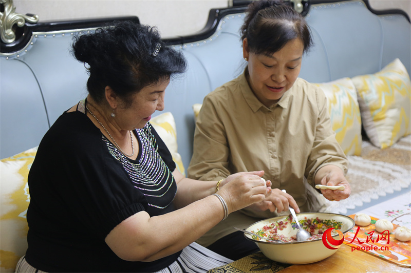 "We've known each other for over 20 years. Since we live in the same residential complex, we can meet each other every day and we celebrate festivals together," said Goya Abdurexit, a female resident of the Guyuanxiang community, while preparing pan-fried stuffed buns with her neighbor Ma Shaoyan before the "hundred family feast."