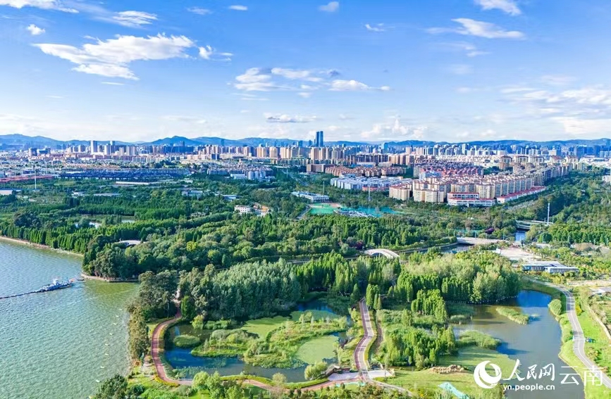 Photo taken on June 13, 2024 shows the view of wetlands along the Dianchi Lake in Kunming, capital city of southwest China’s Yunnan Province. (People’s Daily Online/Hu Zunhui)