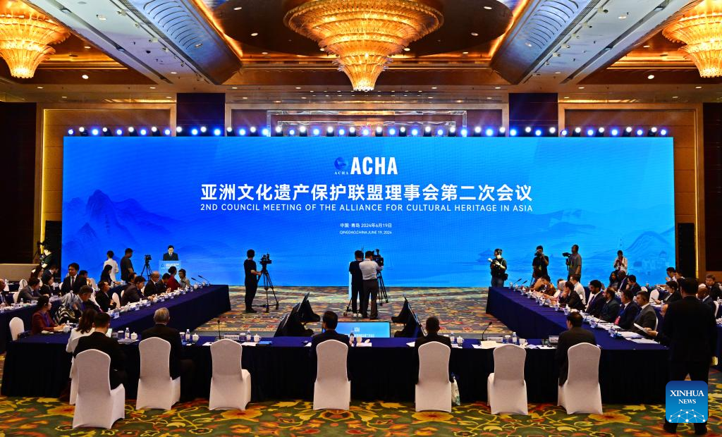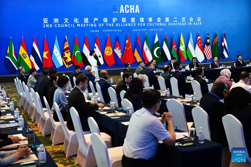 The 2nd Council Meeting of the Alliance for Cultural Heritage in Asia is held in Qingdao, east China's Shandong Province, June 19, 2024. (Xinhua/Li Ziheng)