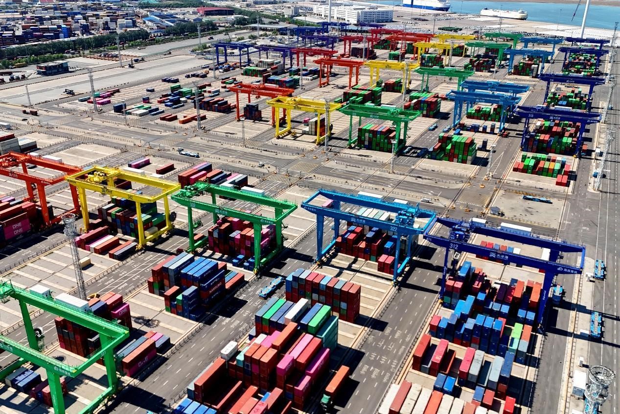 Tianjin Port launches a direct container shipping route to the east coast of South America, May 6, 2024. (People's Daily Online/Zhou Wei)