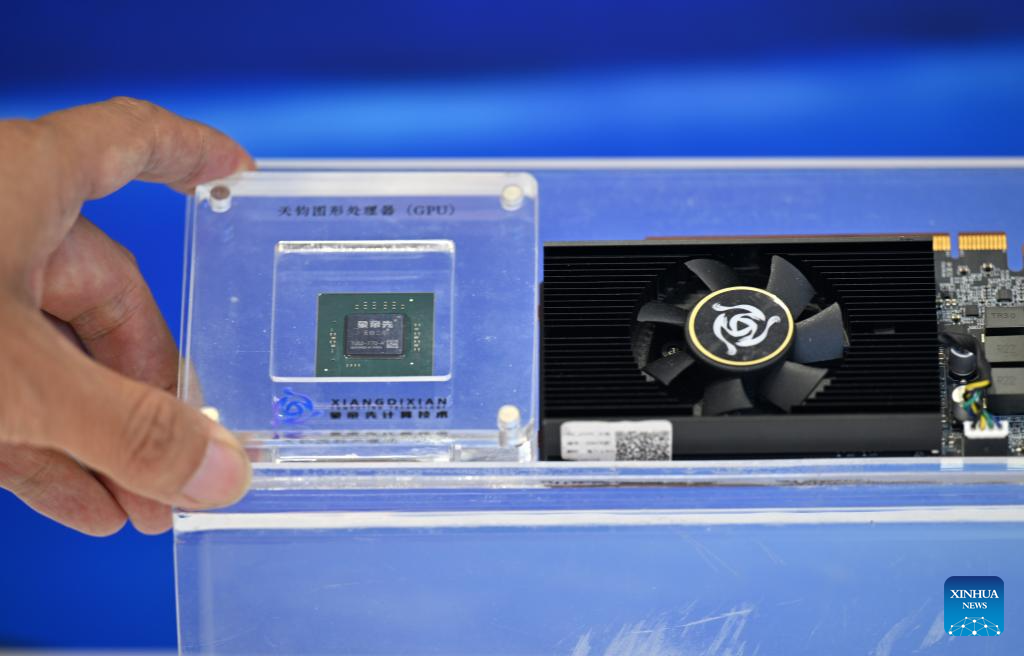 A graphics processing unit (GPU) is displayed at the World Intelligence Expo 2024 in north China's Tianjin, June 20, 2024.