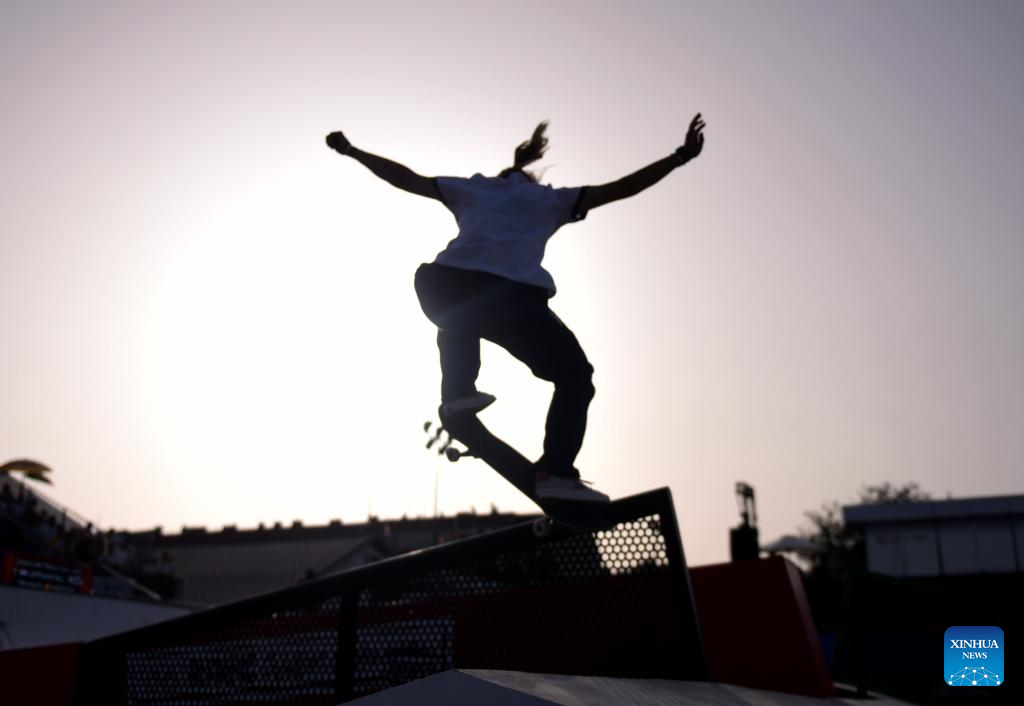 Zhang Yan of China competes during the women's street preliminaries of skateboarding at the Olympic Qualifier Series Budapest in Budapest, Hungary, June 21, 2024. (Xinhua/He Canling)