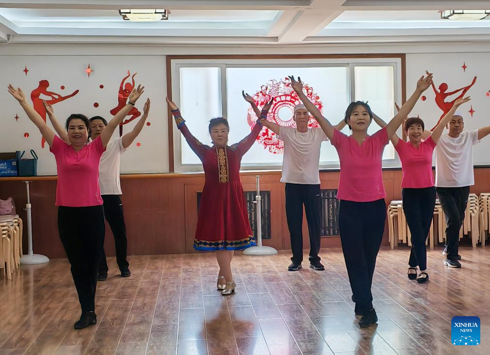 Residents rehearse for dancing at a community in Yinchuan, northwest China's Ningxia Hui Autonomous Region, June 17, 2024. (Xinhua/Liu Hai)