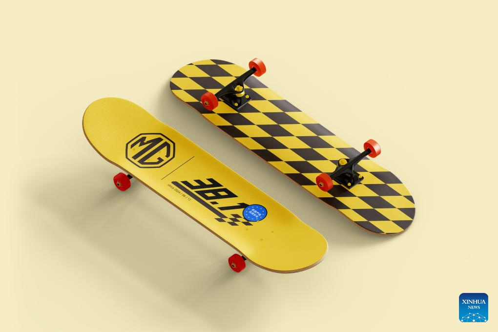 This image shows skateboards designed by Chinese carmaker SAIC Motor to mark European Commission's plan to impose provisional tariffs on China-made electric vehicles. Rather than being daunted by the European Commission's plan to impose provisional tariffs on China-made electric vehicles, Chinese carmaker SAIC Motor has found inspiration in the decision and designed an array of creative products in response. (Xinhua)