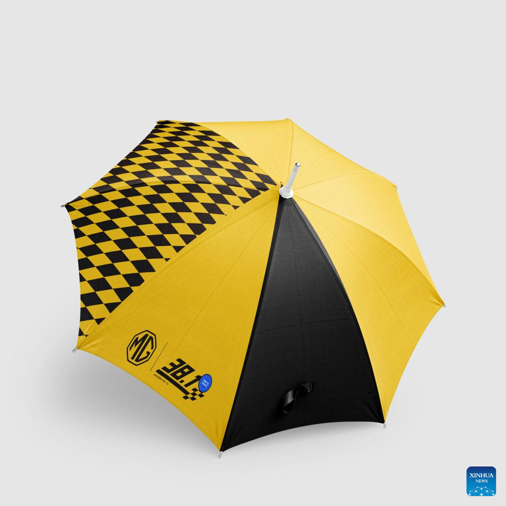 This image shows an umbrella designed by Chinese carmaker SAIC Motor to mark European Commission's plan to impose provisional tariffs on China-made electric vehicles. Rather than being daunted by the European Commission's plan to impose provisional tariffs on China-made electric vehicles, Chinese carmaker SAIC Motor has found inspiration in the decision and designed an array of creative products in response. (Xinhua)