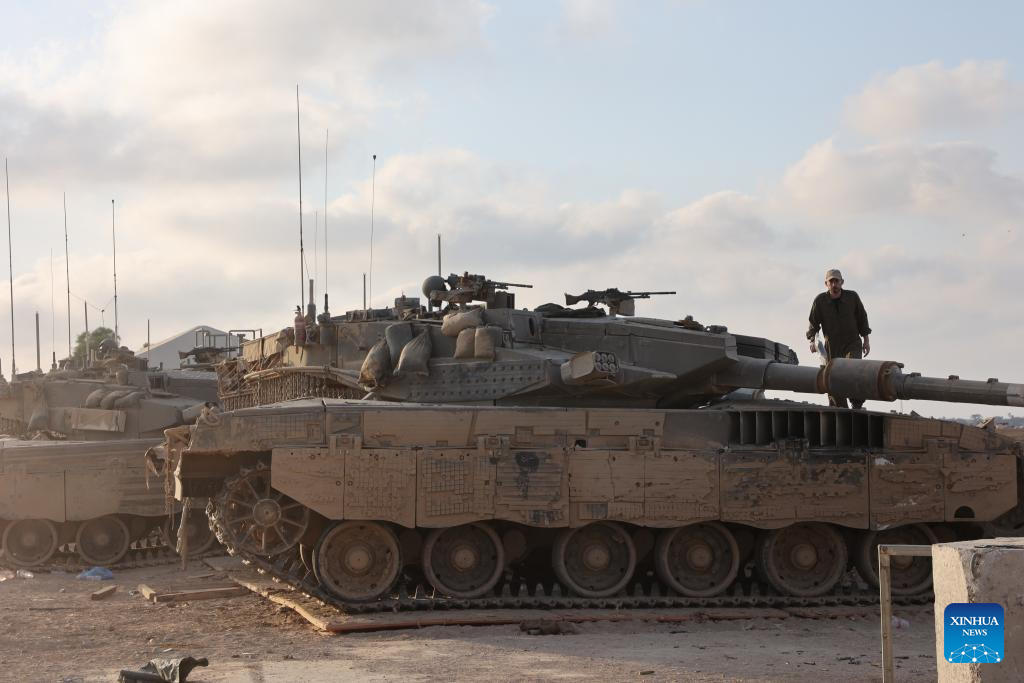 Israeli troops are seen near the border with Gaza Strip in southern Israel, June 23, 2024. Israeli Prime Minister Benjamin Netanyahu said on Sunday that there has been "a dramatic drop" in weapons shipments from the United States for Israel's war in Gaza over the past few months. (Photo by Gil Cohen Magen/Xinhua)