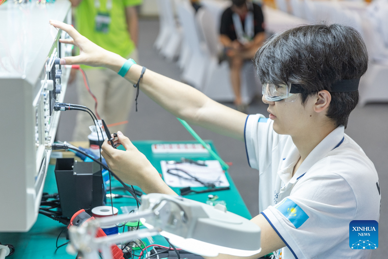 A contestant is pictured during a contest of the second Belt and Road International Skills Competition in southwest China's Chongqing Municipality on June 24, 2024. The second Belt and Road International Skills Competition kicked off at Chongqing International Expo Center here on Monday, attracting participants from 61 countries and regions. (Xinhua/Huang Wei)