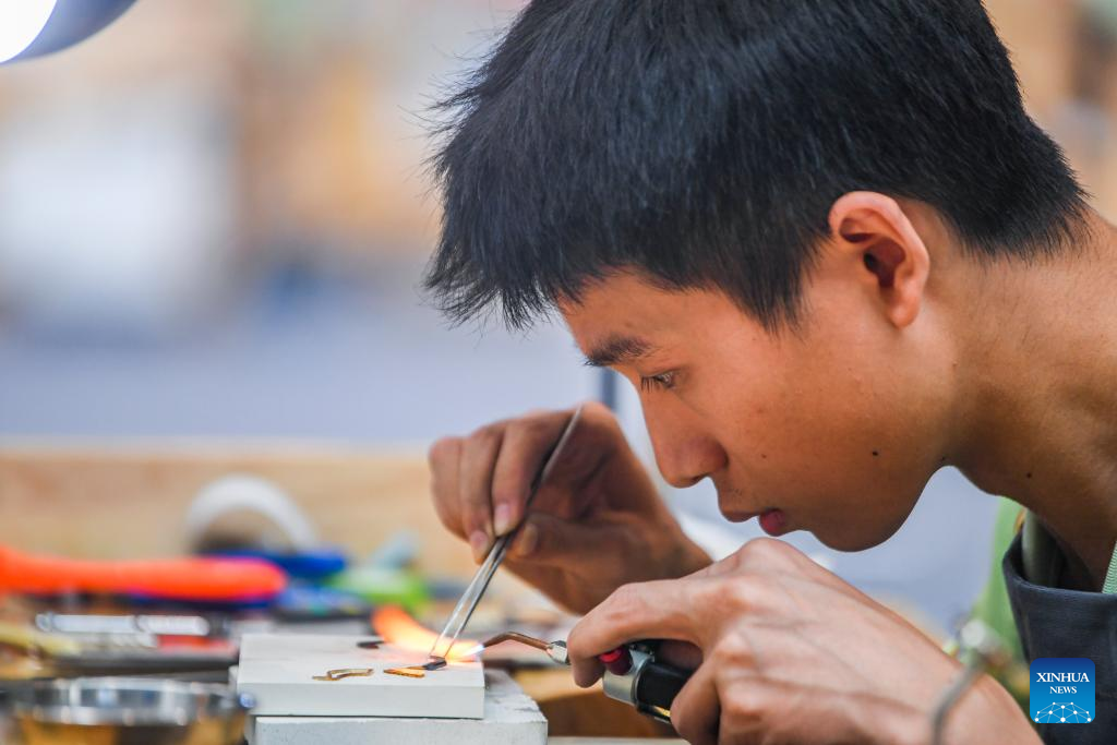 A contestant is pictured during a contest of the second Belt and Road International Skills Competition in southwest China's Chongqing Municipality on June 24, 2024. The second Belt and Road International Skills Competition kicked off at Chongqing International Expo Center here on Monday, attracting participants from 61 countries and regions. (Xinhua/Wang Quanchao)