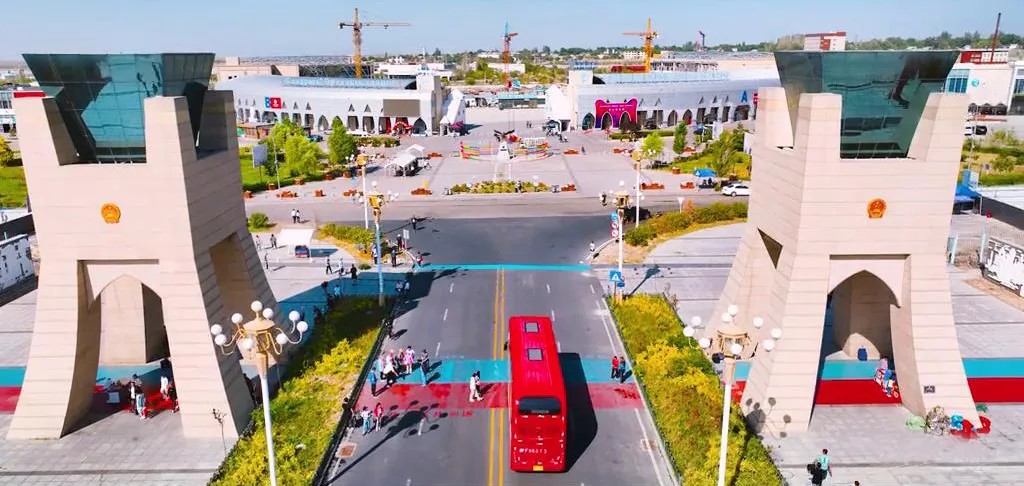 The China-Kazakhstan Horgos International Border Cooperation Center located in the Horgos Area of the China (Xinjiang) Pilot Free Trade Zone is always bustling with activities. The cooperation center spans the border between China and Kazakhstan, covering a total area of 5.6 square kilometers.