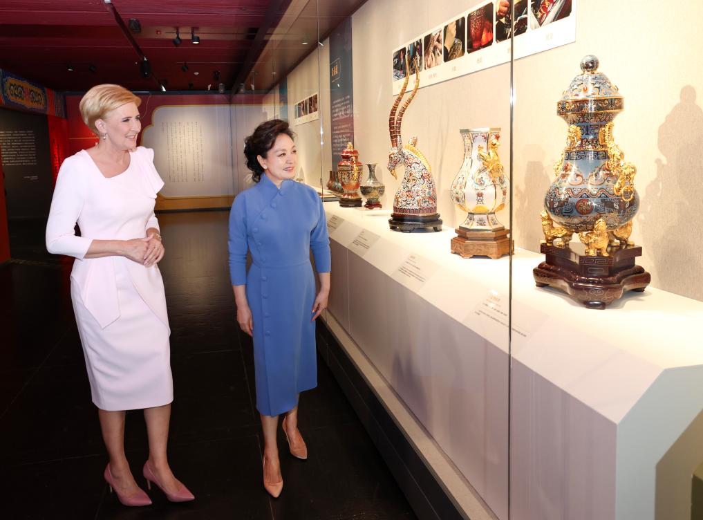 Peng and Agata toured the facilities of the NCPA, and visited an art exhibition on Beijing's intangible cultural heritage that showcases Chinese craftsmanship.