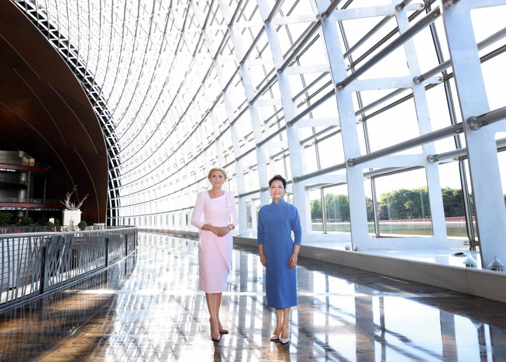 Peng Liyuan, Polish president's wife visit China's national center for performing arts