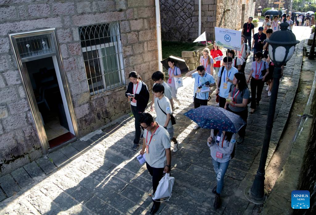 Chinese and American youth visit the Public Service Community of Nations in Kuliang, Fuzhou, southeast China's Fujian Province, June 24, 2024. The "Bond with Kuliang: 2024 China-U.S. Youth Festival" opened on Monday is co-organized by the Chinese People's Association for Friendship with Foreign Countries, the Fujian Provincial People's Government, and the All-China Youth Federation. More than 200 American youth and over 300 of their Chinese counterparts attended the event. (Xinhua/Lin Shanchuan)