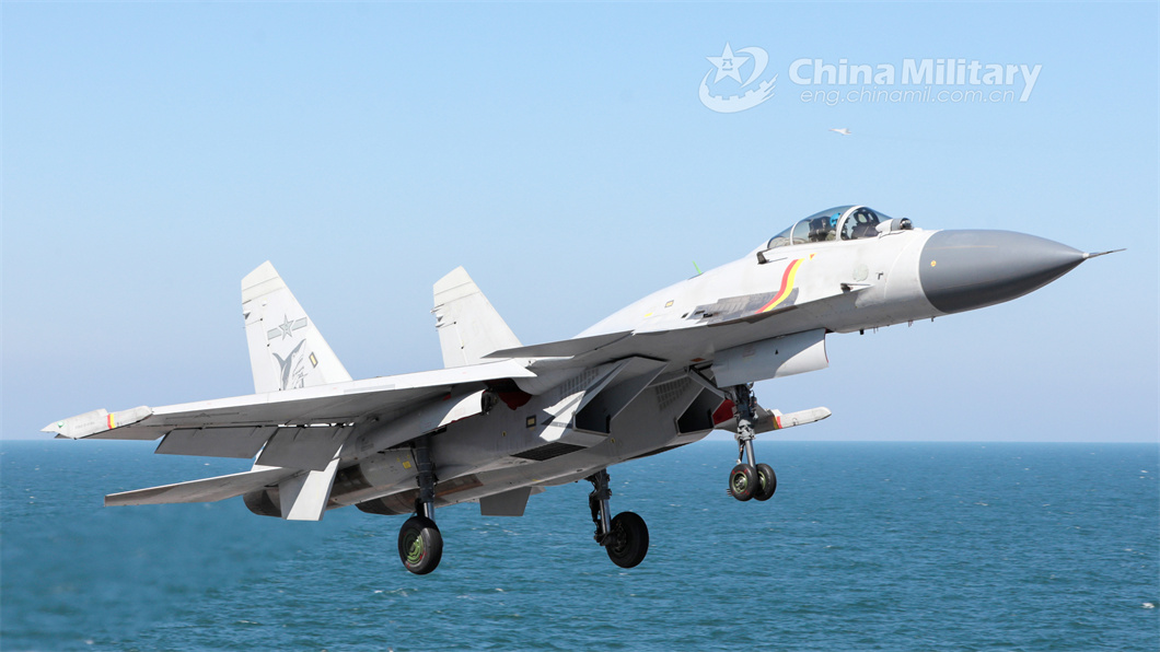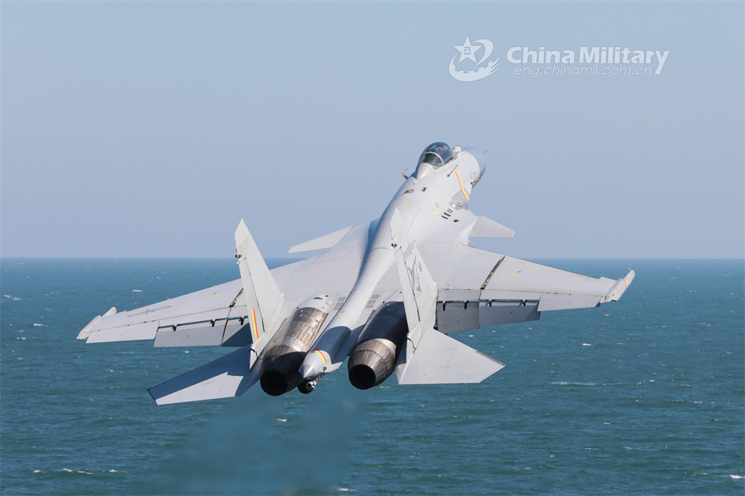 A fighter jet attached to a regiment of the PLA Naval Aviation University takes off for a flight training exercise on June 8, 2024. (eng.chinamil.com.cn/Photo by Xu Yinglong)
