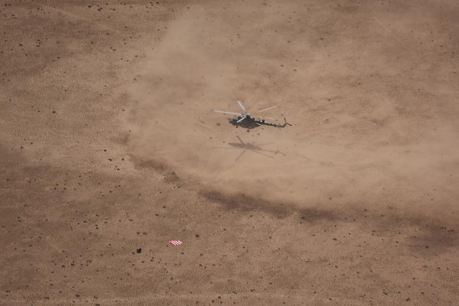 This photo taken on June 25, 2024 shows the retrieval site of the return capsule of the Chang'e-6 probe in Siziwang Banner, north China's Inner Mongolia Autonomous Region. (Xinhua/Jin Liwang)