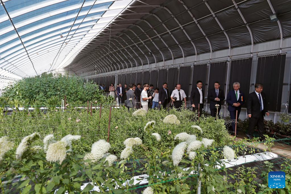 Participants visit a greenhouse at the opening ceremony of the China-Romania Joint Laboratory for Cooperation in Agriculture in Bucharest, Romania, on June 25, 2024. The China-Romania Joint Laboratory for Cooperation in Agriculture was officially inaugurated on Tuesday at the University of Agronomic Sciences and Veterinary Medicine (UASVM) in Bucharest, aiming to enhance collaborative research in agricultural science and technological innovation. (Photo by Cristian Cristel/Xinhua)