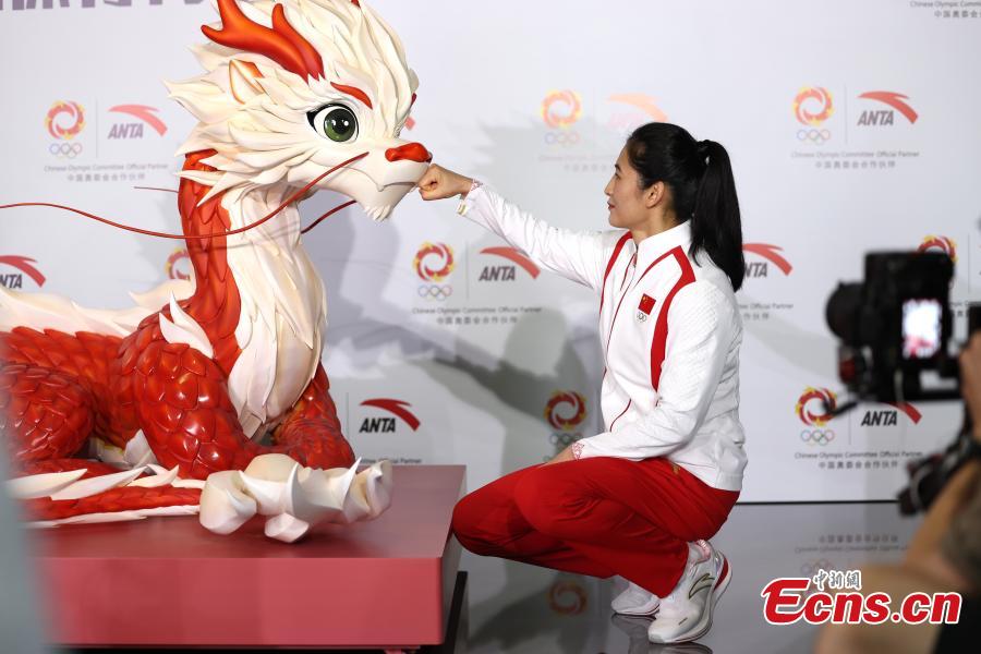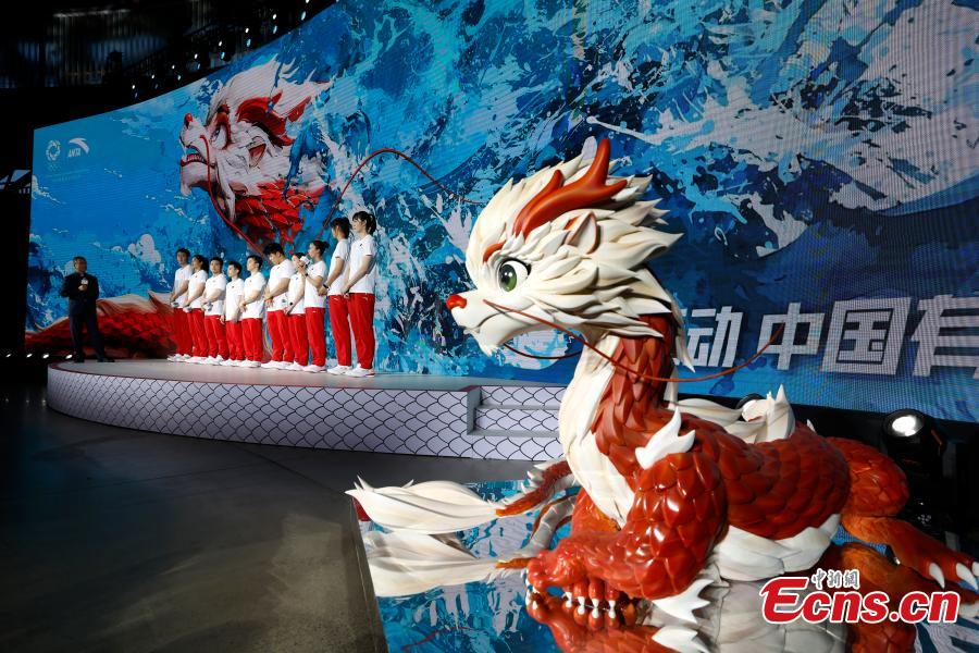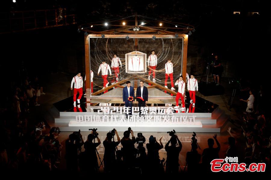 The medal ceremony uniform for the Chinese delegation at the Paris Olympic Games is unveiled on June 25 in Beijing. (Photo: China News Service/Chen Jimin)