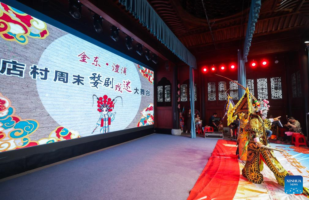 Artists from a local folk troupe of Wu Opera perform on the stage in Zhengdian Village of Lipu Town, Jinhua City, east China's Zhejiang Province on June 25, 2024. (Xinhua/Xu Yu)