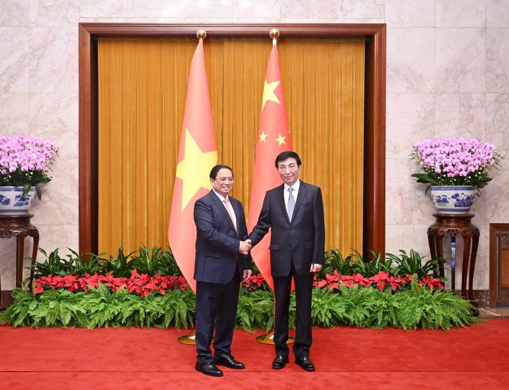 Noting developing bilateral relations between the two parties and countries is the strategic choice and top priority of Vietnam's foreign policy, Chinh said Vietnam firmly adheres to the one-China policy and is willing to further exchange experience on party and state governance with China, as well as further develop close mutually-beneficial cooperation and push for greater development of bilateral relations.