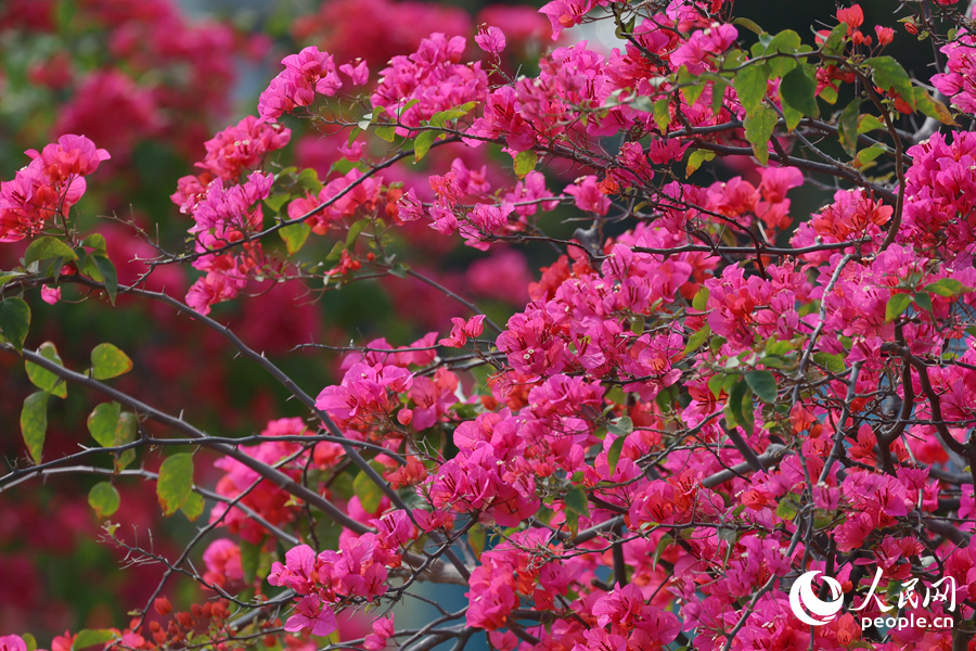 Bougainvillea flowers are in full bloom in Wenbita Park in Tongan district of Xiamen, southeast China’s Fujian Province. (People’s Daily Online/Chen Bo)